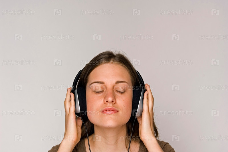 Молодая женщина слушать музыку в наушниках