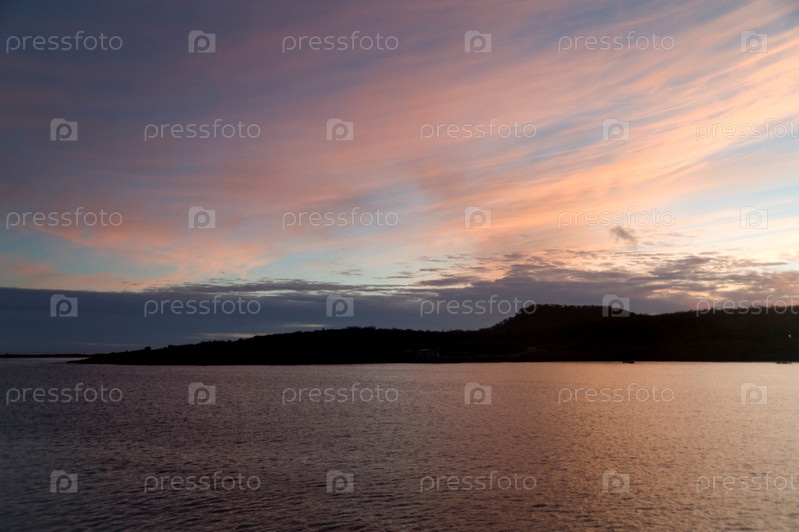 Силуэт острова в сумерках, остров Сан-Кристобаль, Галапагосские острова, Эквадор