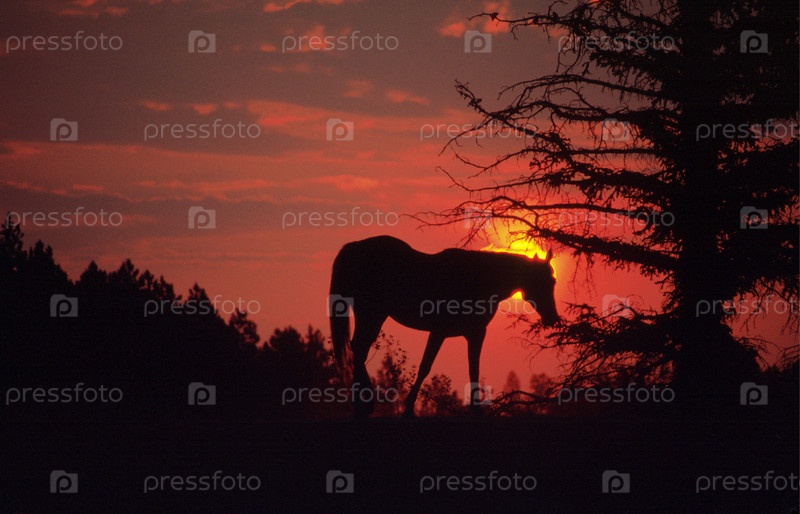 Лошадь на холме на закате