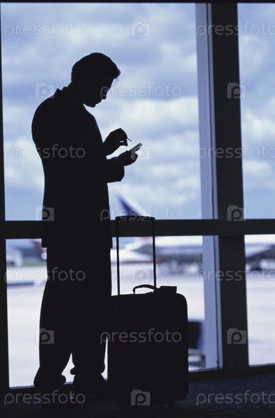 Силуэт бизнесмена, стоя в аэропорту