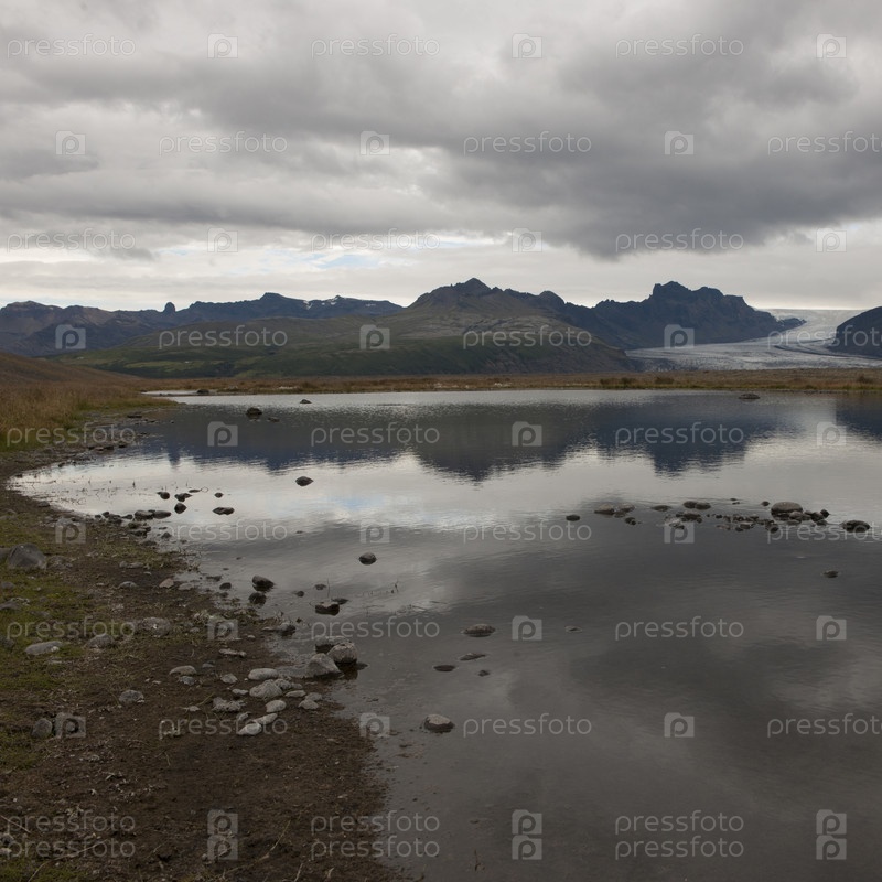 Скалистые берега ледниковое озеро, горы и ледник