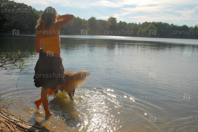 Молодая девушка, глядя на озеро