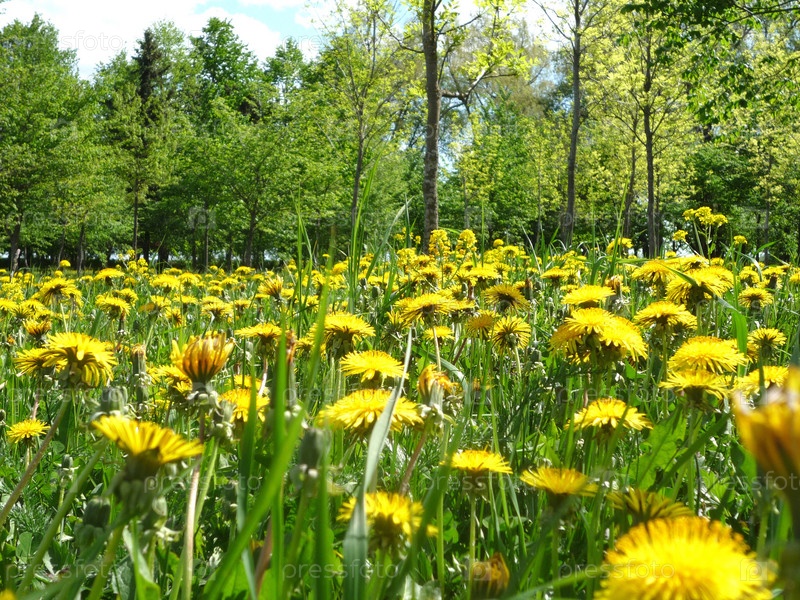 Цветущие одуванчики