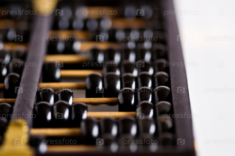 Старые старинные деревянные счеты на белом фоне