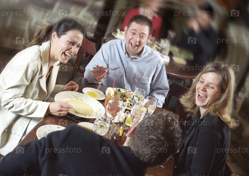 Друзья, смеясь над ужин