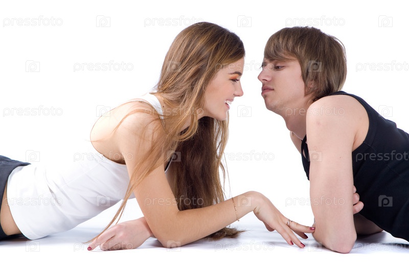 Красивая молодая пара на белом фоне