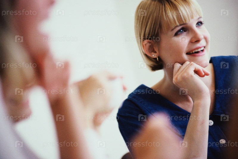Портрет женщины, улыбаясь на разговор