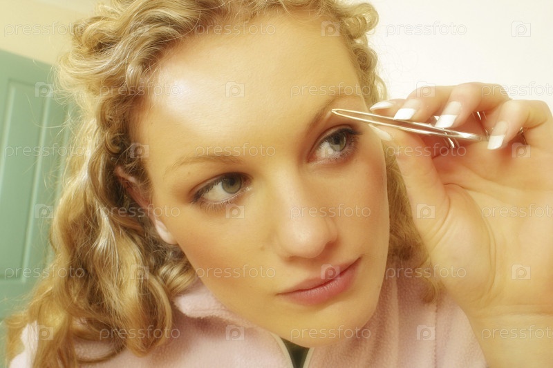 Женщина выщипывание бровей