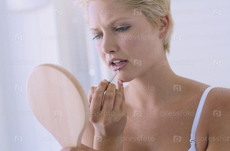 Молодая женщина, глядя в зеркало
