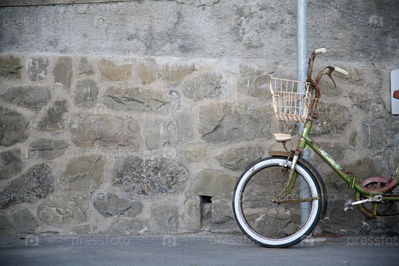 Велосипед, прислонившись к кирпичной стене