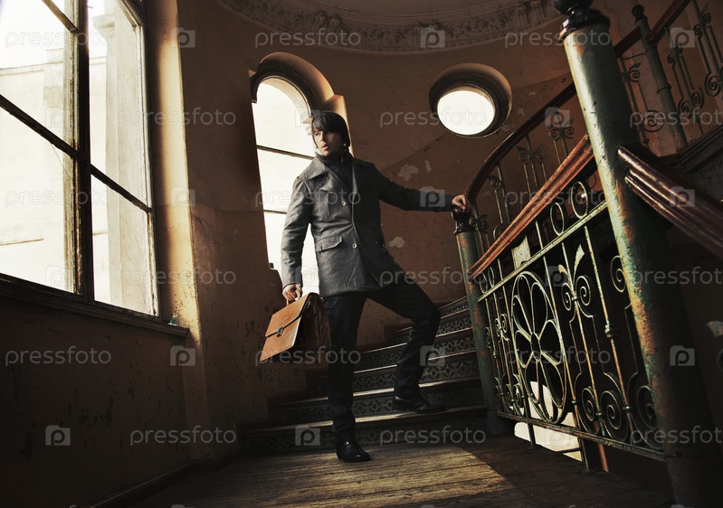 Человек с портфелем в старинный интерьер