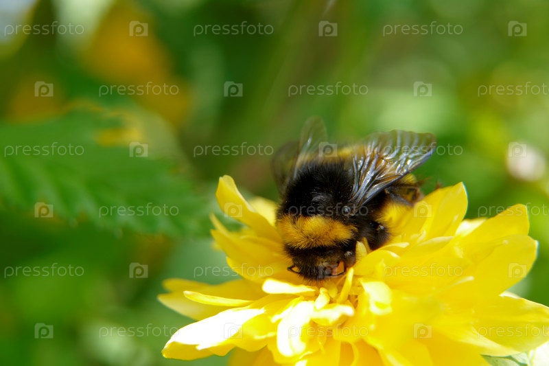 Шмель опыления желтый цветок в летнее время