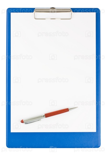Планшет с пустым листком бумаги и ручкой