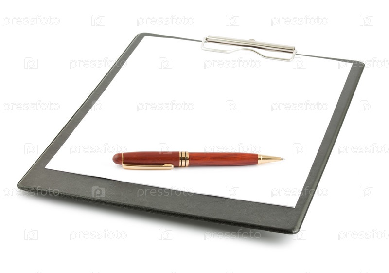 Планшет с пустым листком бумаги и ручкой