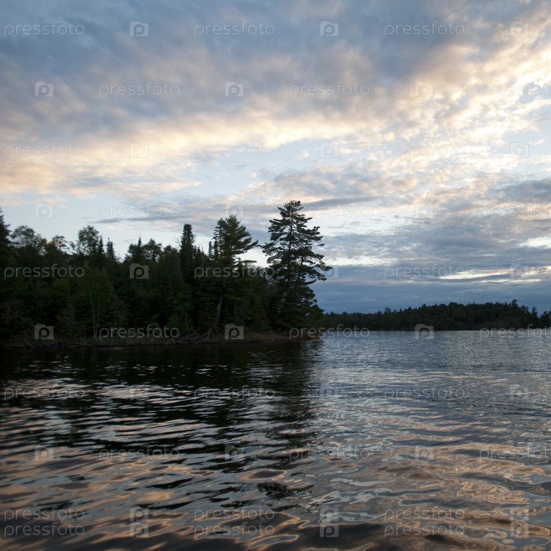 Горизонт в сумерках в Озеро древесин, Онтарио