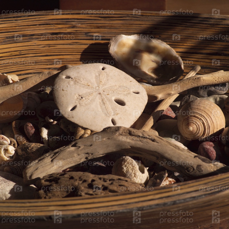 Морские раковины в корзине