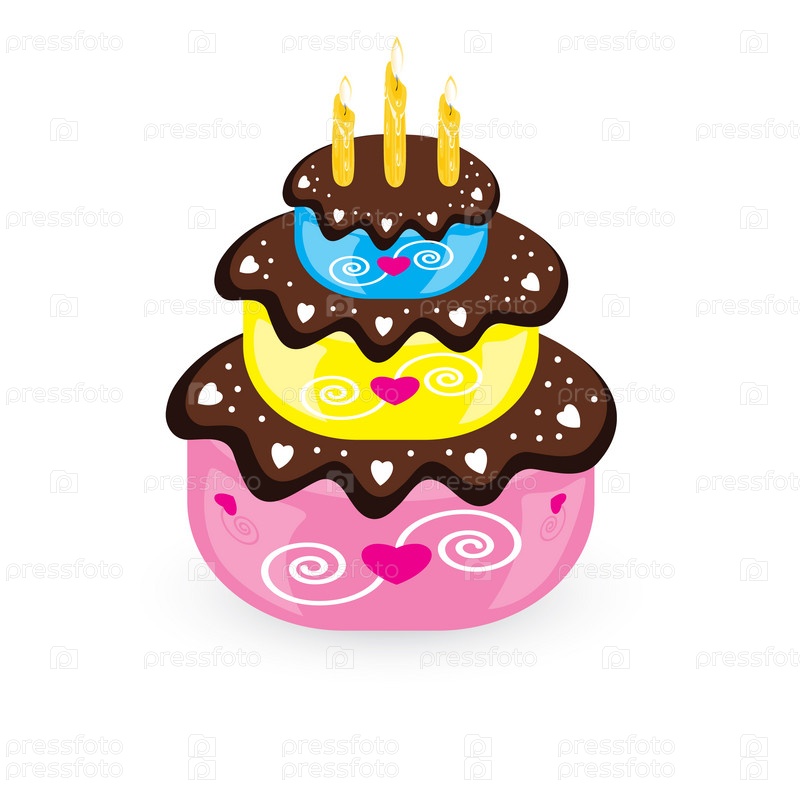 Торт со свечами, иллюстрация на белом фоне