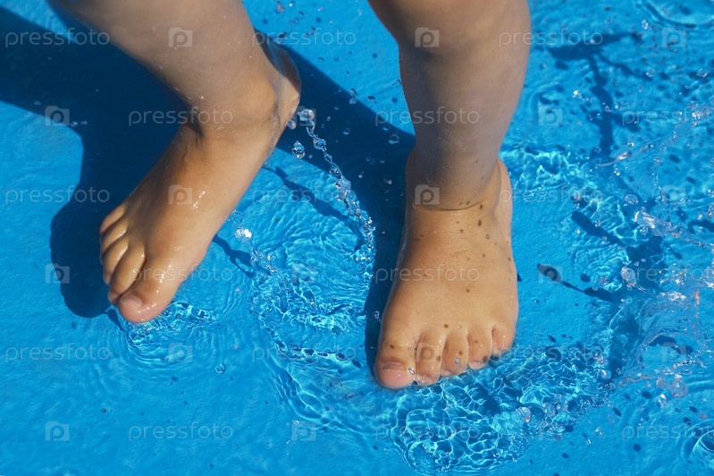 Ребенок, стоя в воде мелкий бассейн