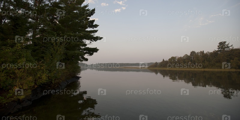 Береговая линия в сумерках в Озеро древесин, Онтарио