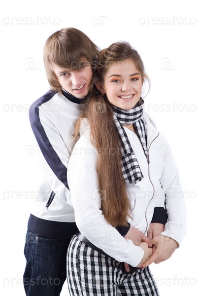 Красивая молодая пара на белом фоне