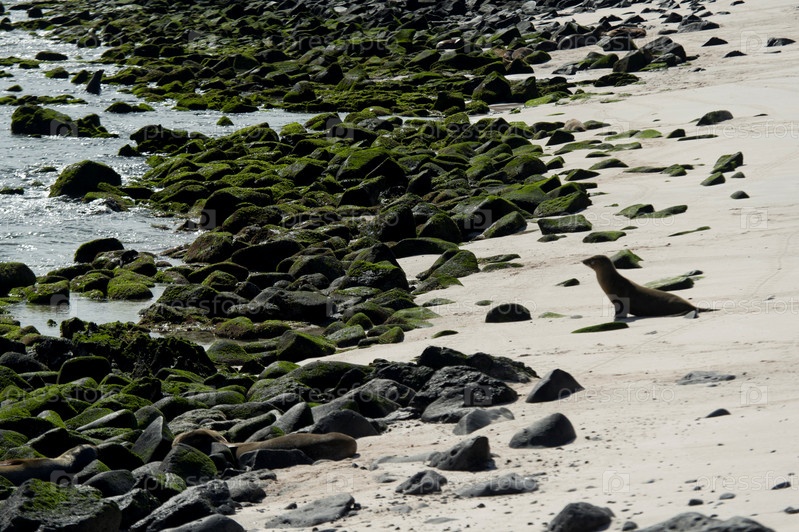Морские львы на пляже
