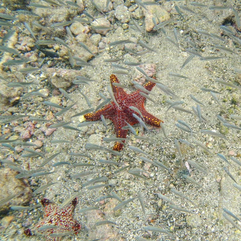 Морская звезда и школа рыб, плавание под водой