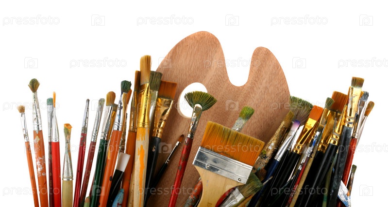 Множество кисточек для рисования на белом фоне