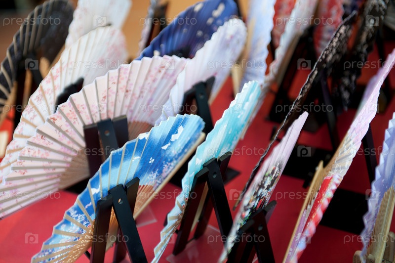 Крупным планом красочных японских складывающиеся веера