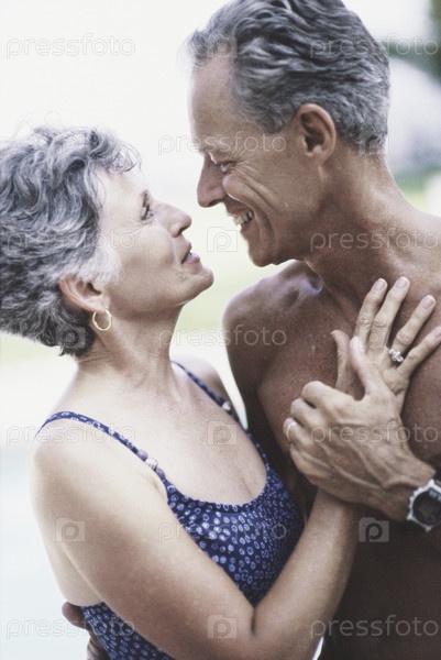 Пожилые супружеские пары, обнимая друг друга