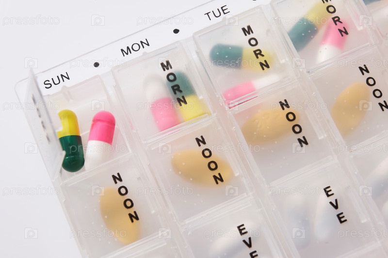 Различные виды таблеток в контейнере
