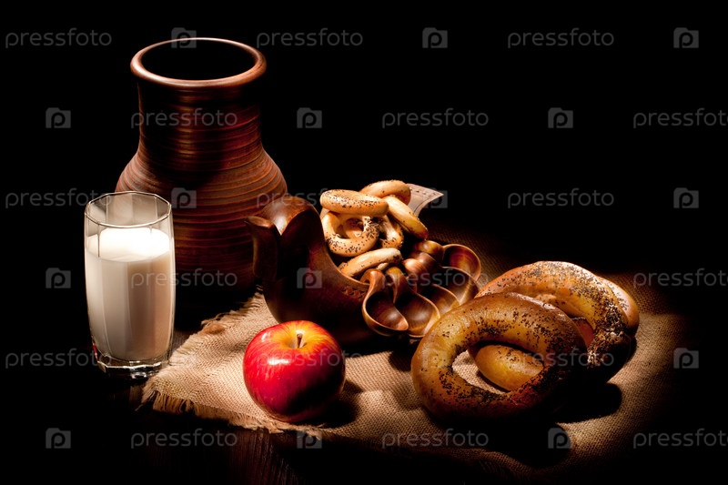 Натюрморт с молоком и хлебом