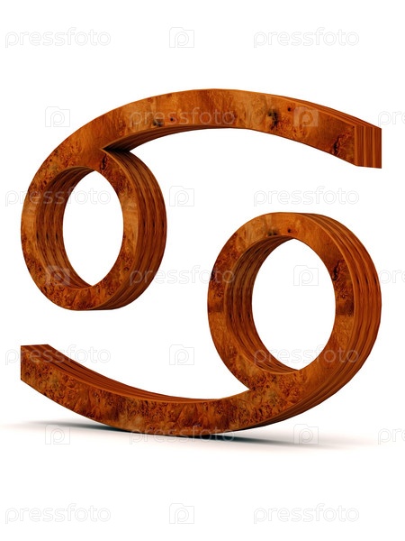 Деревянный знак зодиака "Рак" на белом фоне