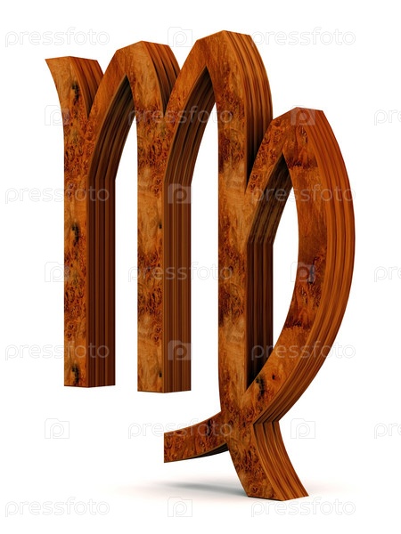 Деревянный знак зодиака "Дева" на белом фоне