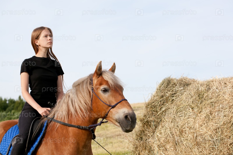 Двушка на лошади у стога сена