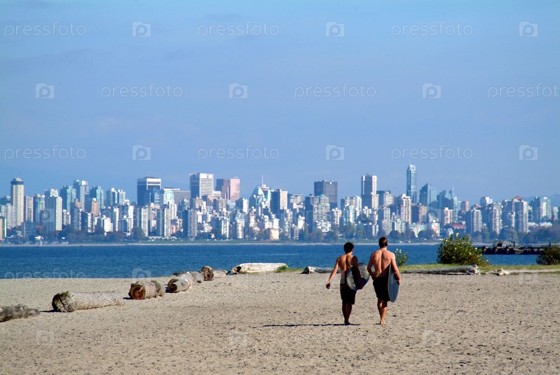 Два серферов, ходить на пляж в Канаде