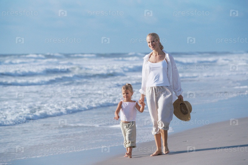 Мать и дочь, прогуливаясь по набережной