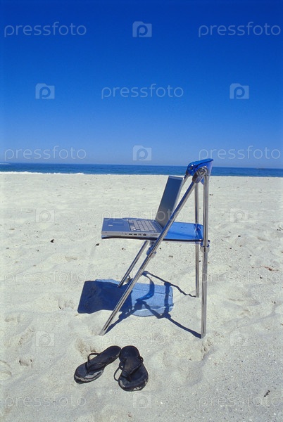 Тапочки и ноутбук на пляже
