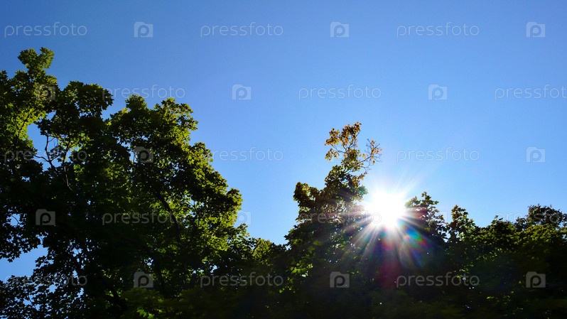 Солнце сияет через листвы