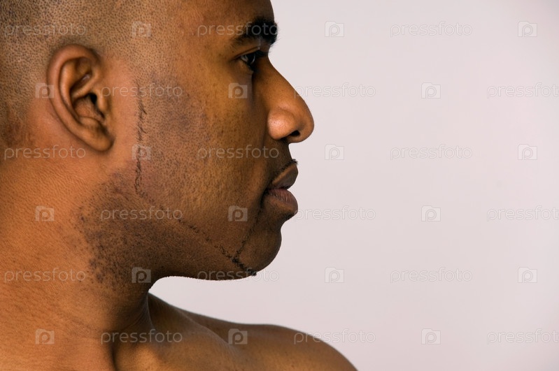 Сильный стоическое профиль афро-человек