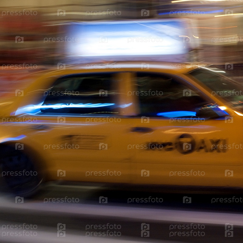 Размытое изображение желтого такси в Манхэттене, Нью-Йорк Сити, США