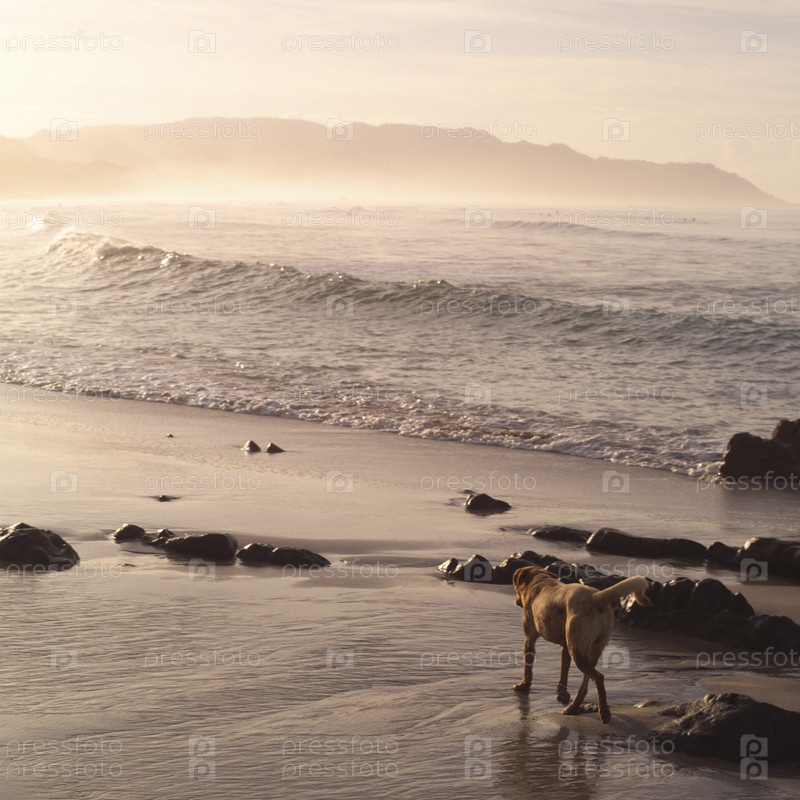 Собака ходить на пляже