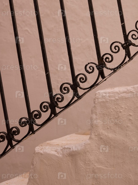 Декоративные железнодорожных на лестнице в Миконос Греция