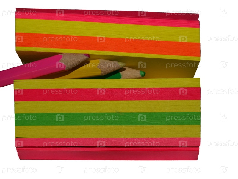 Цветные карандаши и разноцветные листы бумаги для заметок