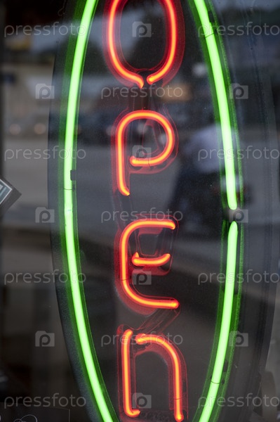 Неоновая реклама в центре исторического района, Брэнсон, Миссури