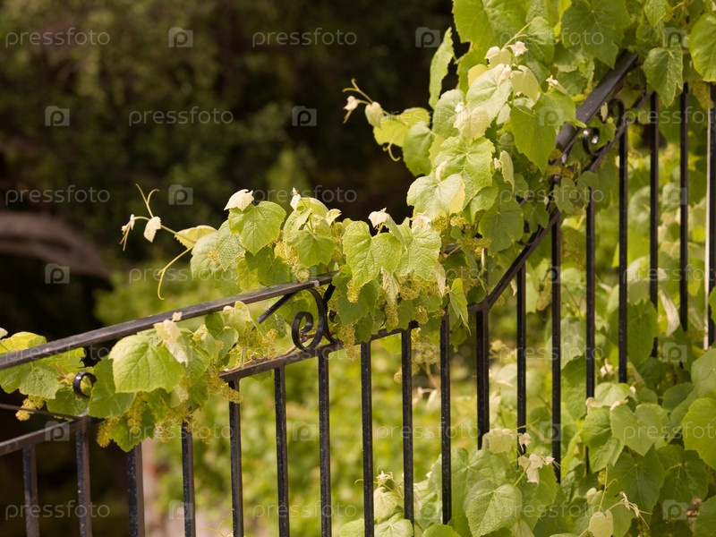 Виноград растет на заборе в Корфу