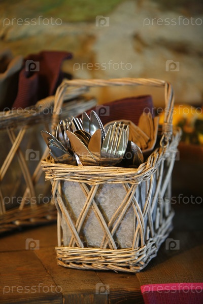 Столовые приборы в корзине