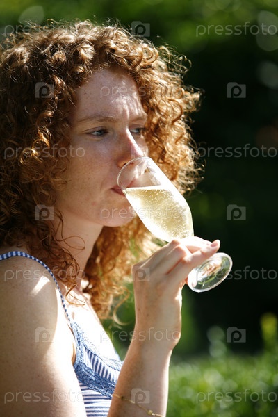 Красивая женщина пьет шампанское