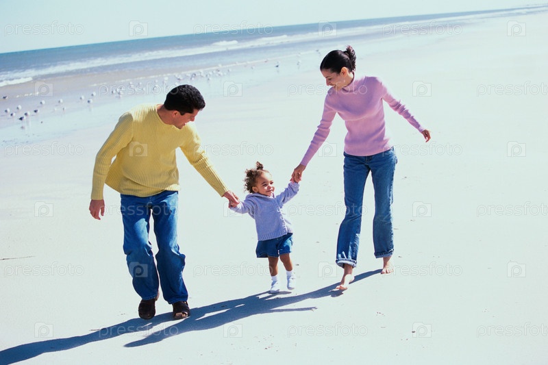 Портрет молодой семьи на пляже