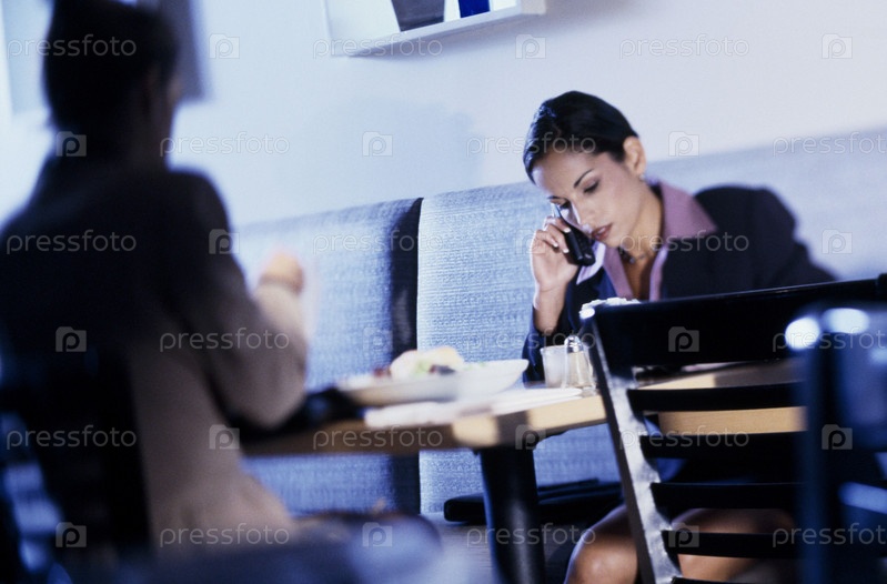 Портрет женщины с телефоном в кафе