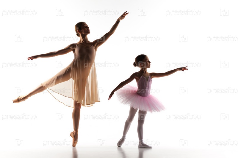 Маленькая балерина танцует с учителем в танцевальной студии